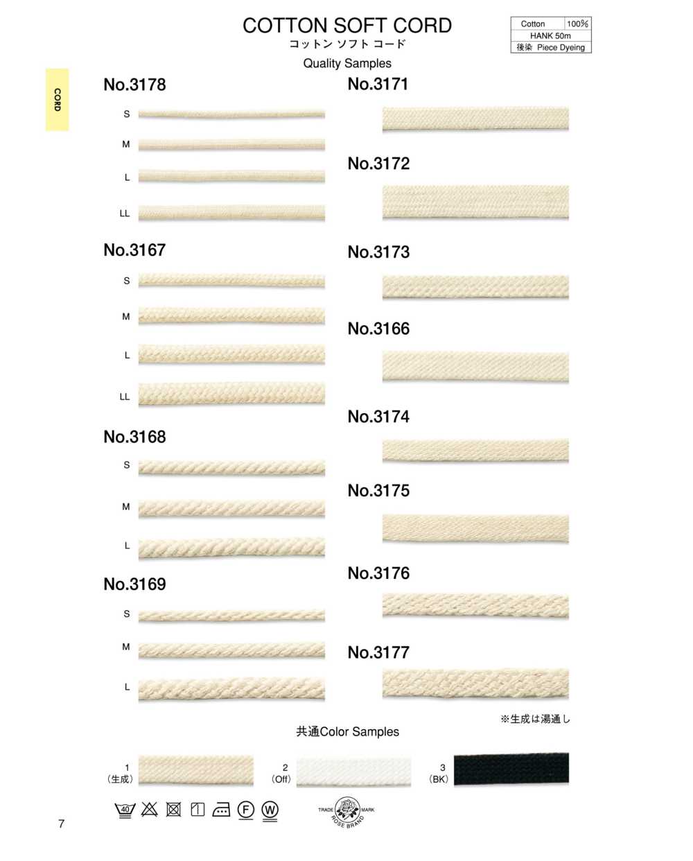 巾着の紐や、ハンドメイドなどにおすすめです。太さのバリエーションも豊富なので、様々な用途に合わせてお使いいただけます。
