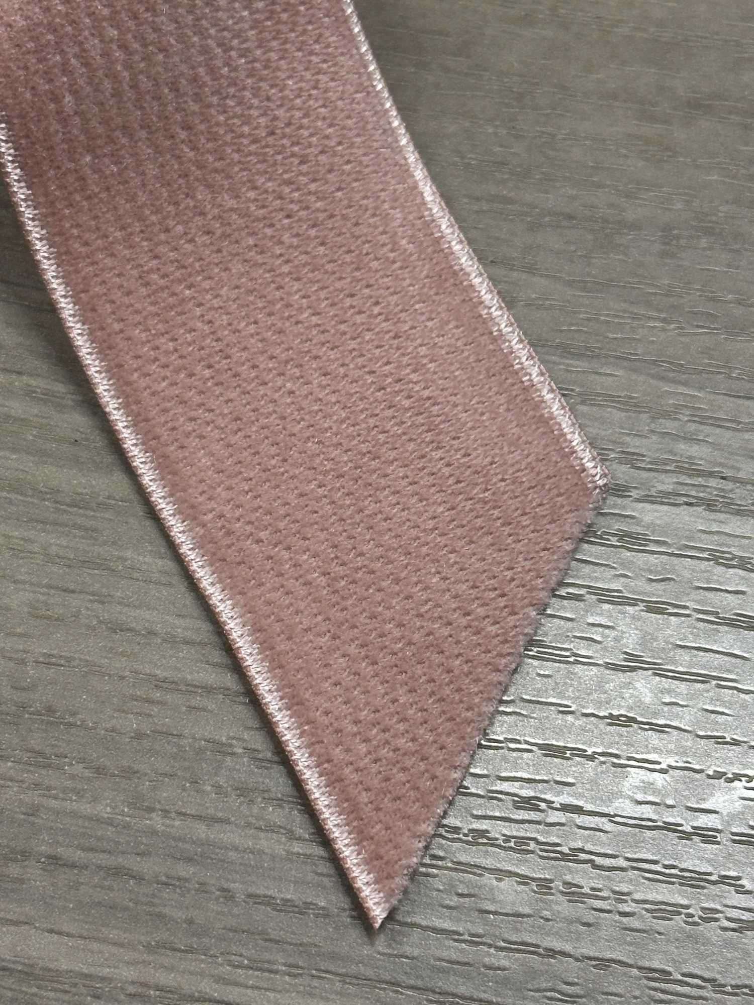 珍しい両面別珍リボンで、両面共に別珍になっています。短く揃ったレーヨン糸の毛並みの手触りは優しく、上品な印象を与えてくれます。他のリボンよりも存在感がある別珍は、単品でもアイデア次第でアクセントになります。