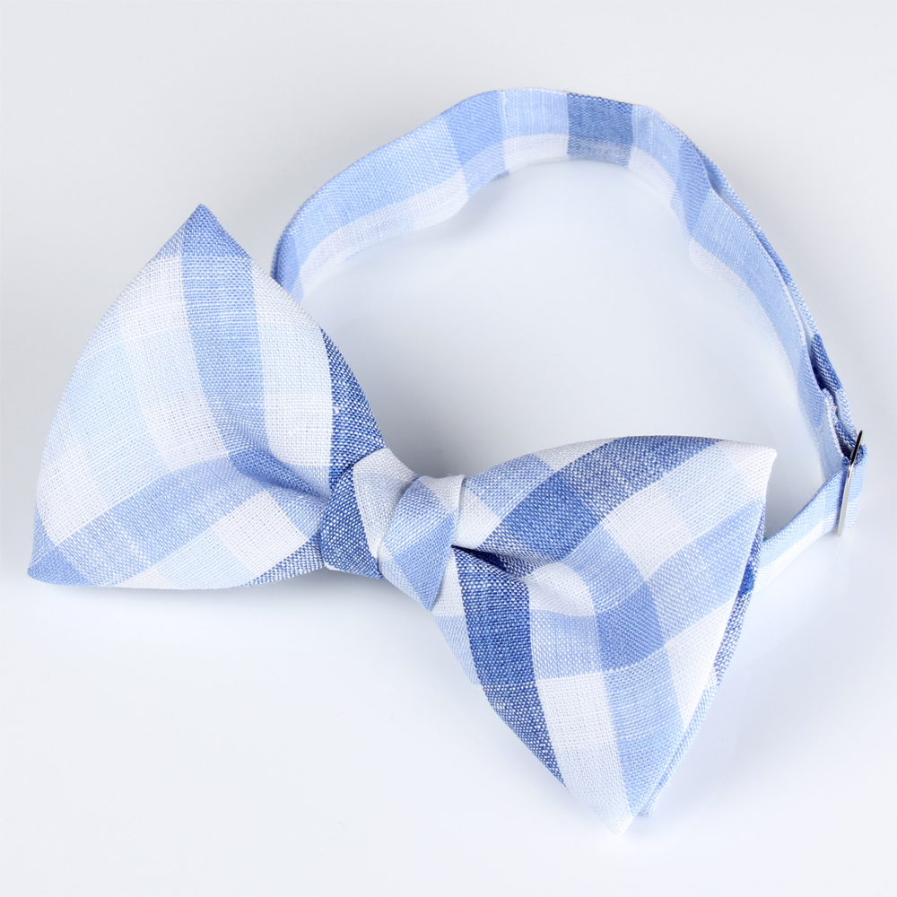 カジュアル蝶タイ ブロックチェック ブルー/ホワイト