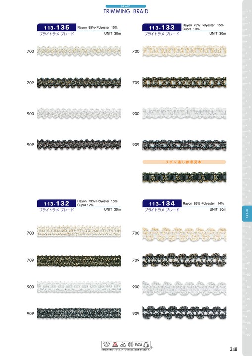 レーヨン素材のブライトラメブレードです。華やかな印象で服飾から雑貨まで様々な用途でお使いいただけます。