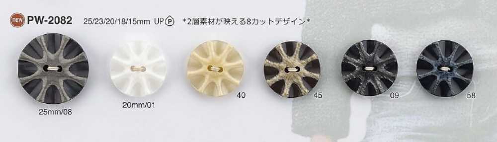 ポリエステル樹脂製の表穴2つ穴ボタンです。